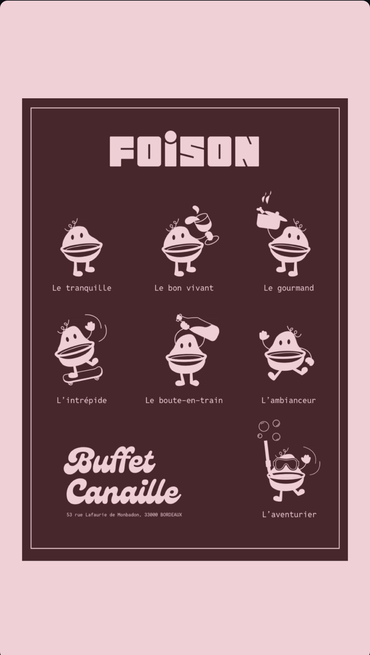 Avant de travailler sur l’aménagement intérieur du restaurant Foison, les équipes de Zéphyr ont conçu l’identité visuelle du restaurant. En commençant par le logo, puis les cartes de visites, la mascotte, les étiquettes, etc.