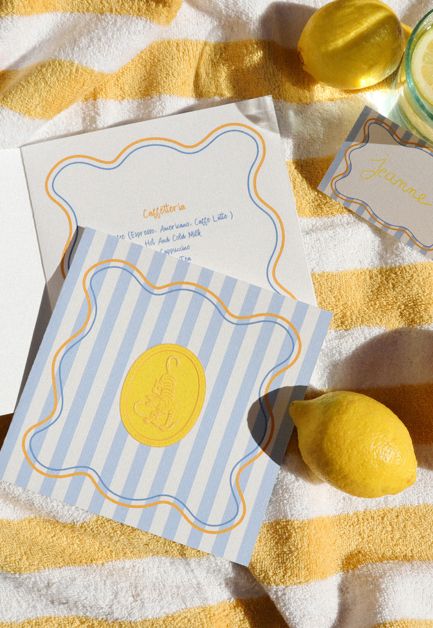 A phantasmagorical event in a magical location in Italy. Over four days, four themes unfold, featuring lunches, beach parties, dinners, cocktails, and concerts in a splendid setting along the Italian coast. Zéphyr has crafted the entire visual identity of the event and developed the print materials for various highlights of the celebration, immersing guests in a world that is both opulent and extravagant.