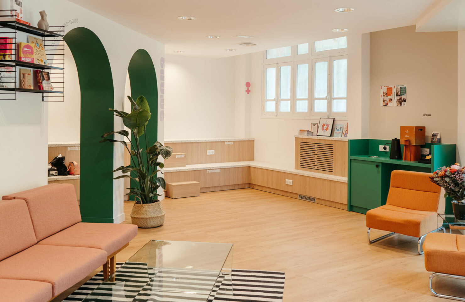 Isabelle and Valentine founded Jeen, a support center dedicated to women’s health, where they can find a caring ear. To reflect their philosophy, Zéphyr imagined the center as an agora, a public square, a space open to all to meet and discuss subjects that are all too often taboo. The graphics and interior design break away from the medical world, making you feel welcome in an environment that reflects who you are.